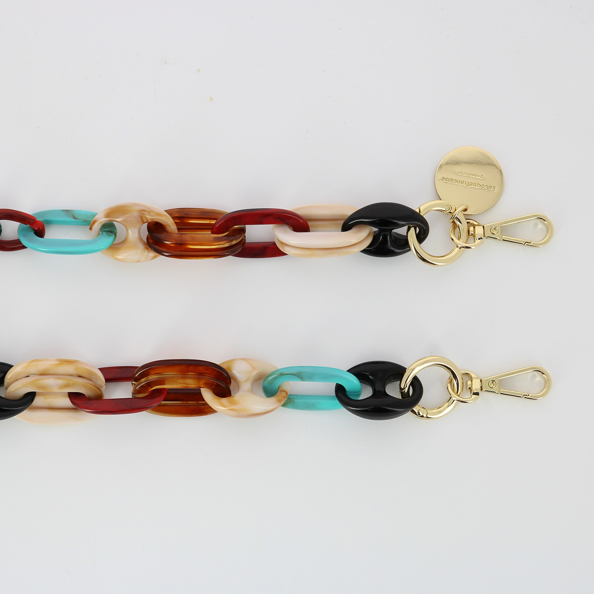 Chaîne bijoux Ambre avec mousquetons dorés de 120 cm en résine ultra résistante coloris multicolor