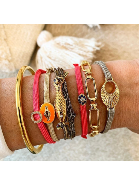 Grâce à ses deux noeuds coulissants, le multi cordon BONIFACIO au fil irisé s’ajuste à tous les poignets. Sa fermeture aimantée permet de le fermer hyper facilement.