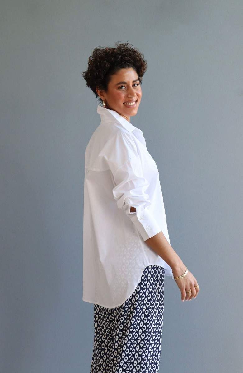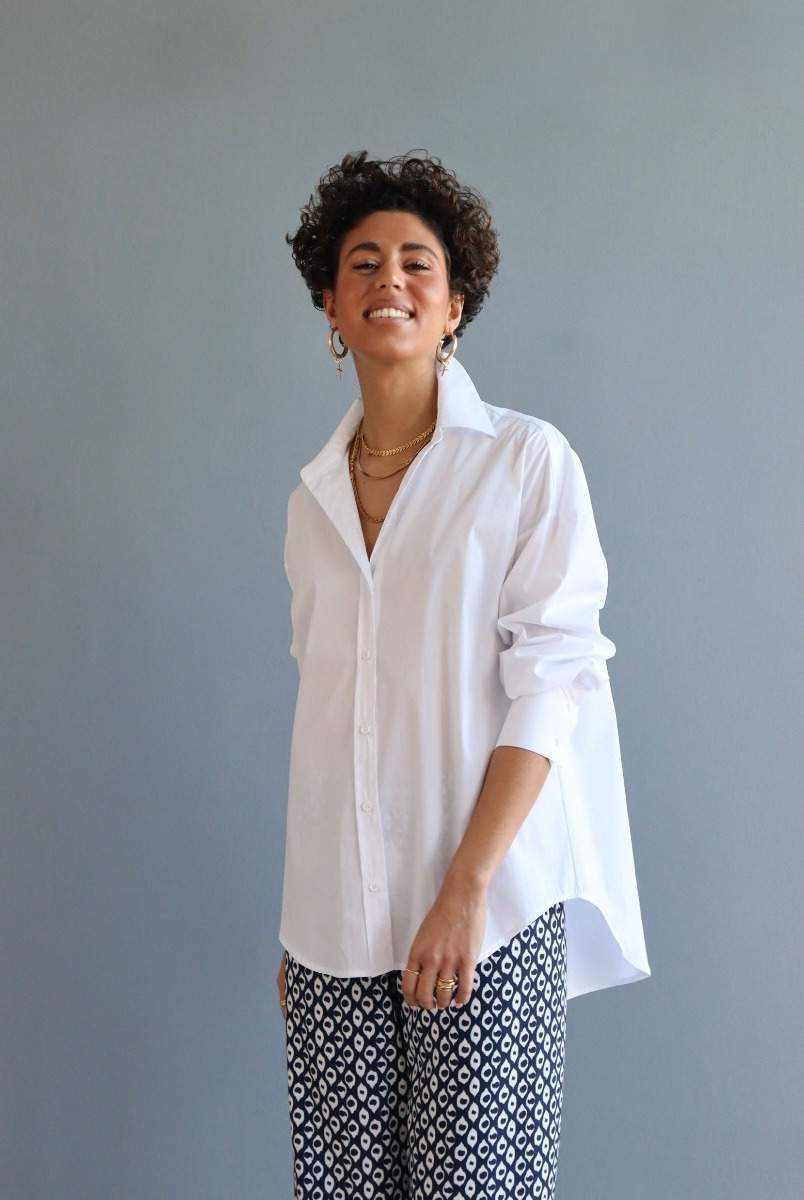 Col chemise ouvert avec fermeture boutonnée et tissu élastique pour plus de confort. Composition : 79% Coton, 18% Polyamide, 3% Élasthanne