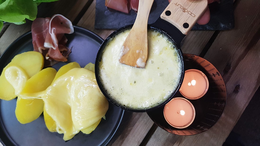 cuire ta raclette simplement à la bougie, aussi rapidement qu’avec un appareil électrique à raclette.