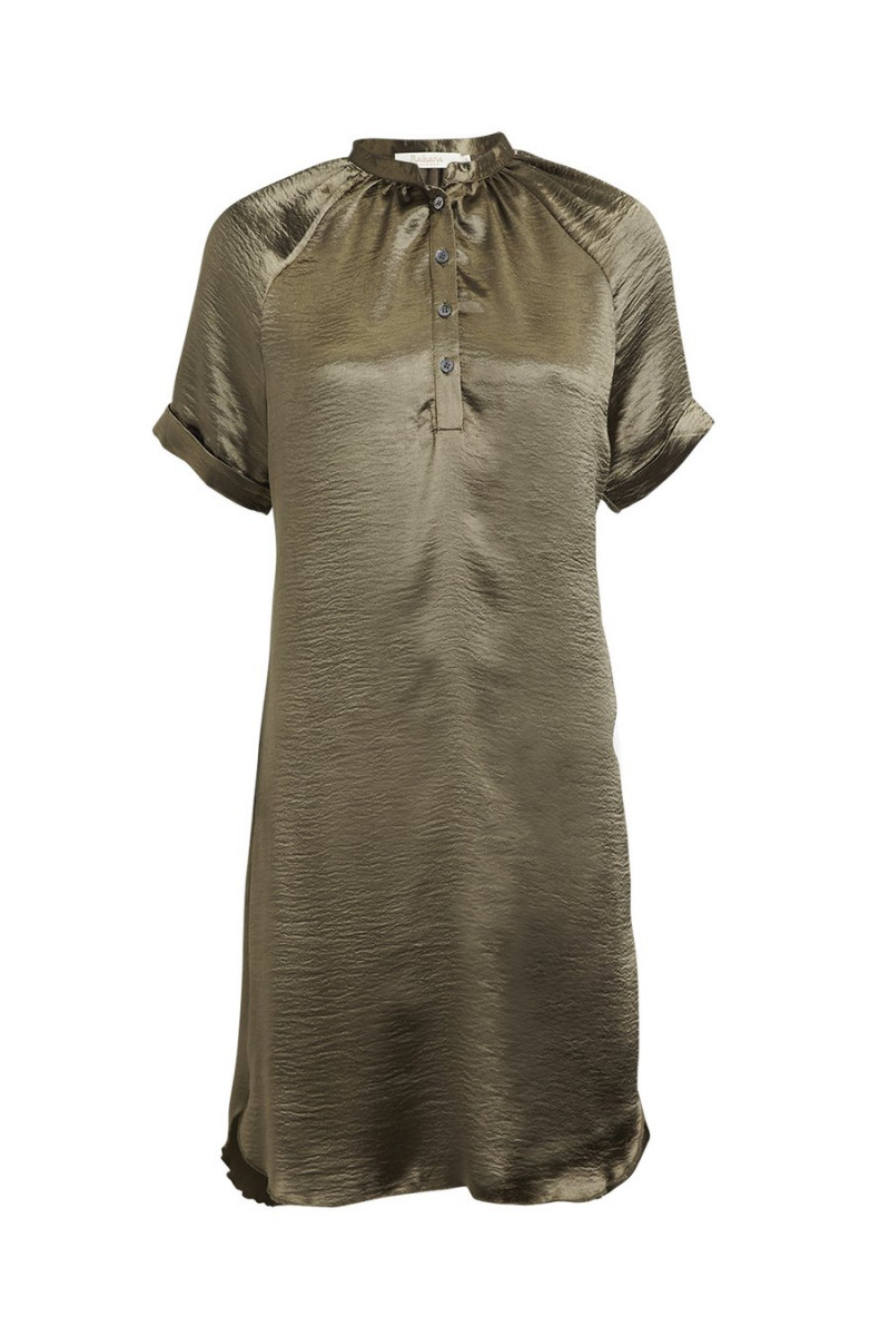 Fabriquée en Inde, la robe foulard mi-longue lisse est définie par un design intemporel avec des manches courtes retroussées, un col caractéristique et un devant boutonné. Crêpe 100% polyester