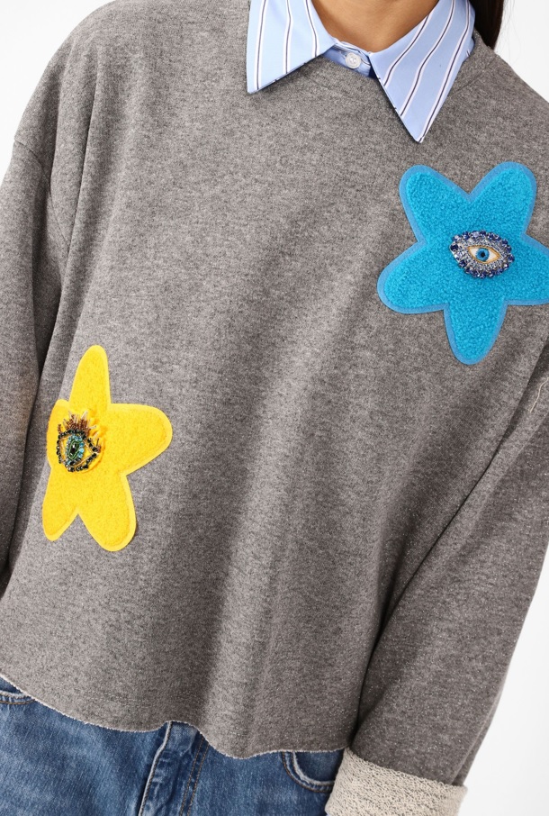 Ce sweat de couleur unie se caractérise par une encolure ronde, des imprimés appliqués multicolores et des emmanchures basses. Composition:85% coton, 15% polyester
