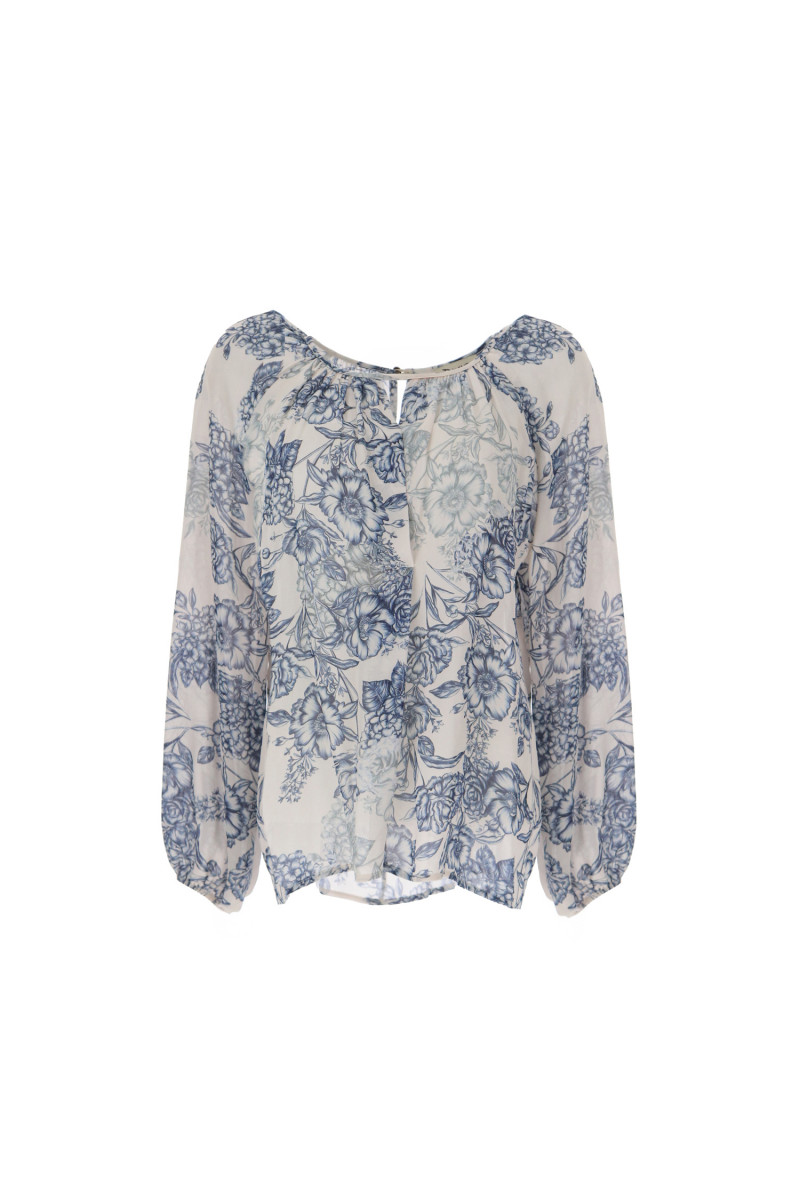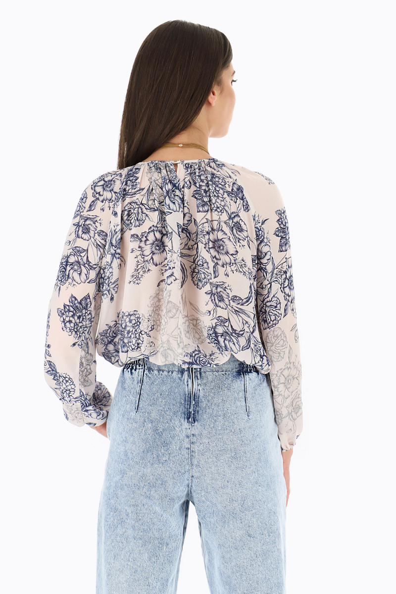 TOP A MOTIFS ET MANCHES BOUFFANTES