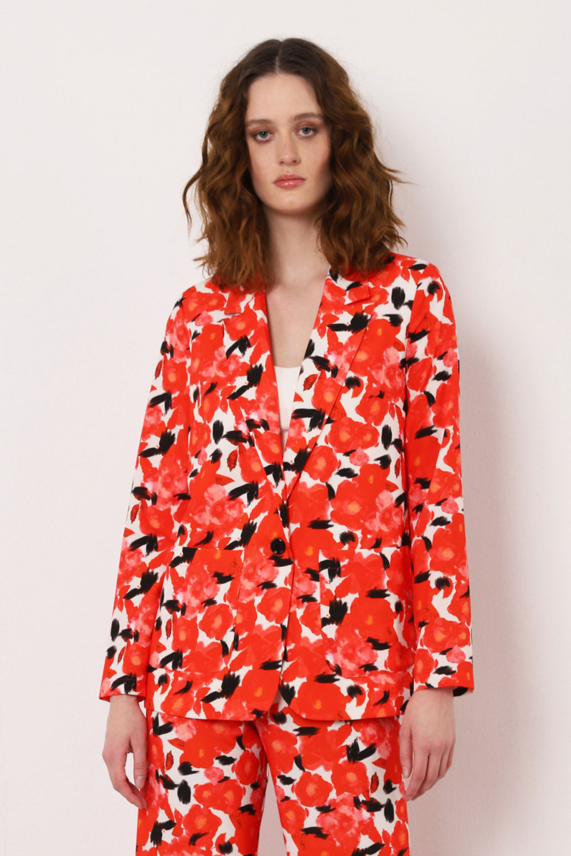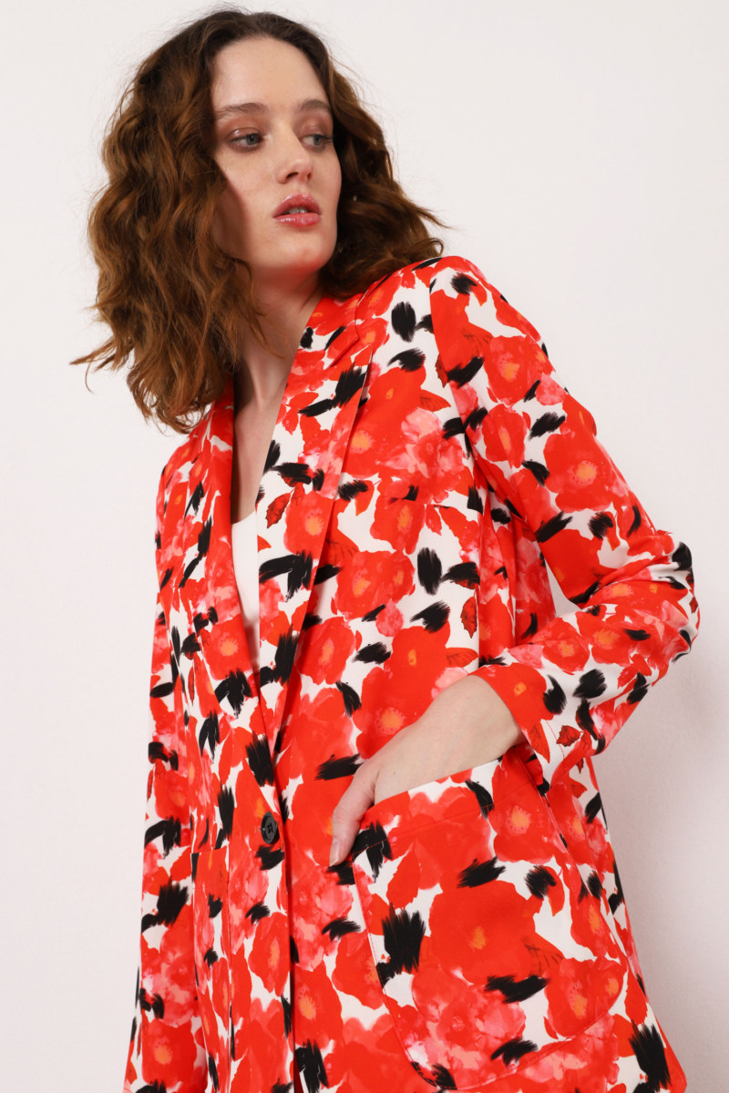 Cette veste fleurie à boutonnage simple et motif se caractérise par des revers classiques, une fermeture à un seul bouton et des poches plaquées. 92 % polyester, 8 % élasthanne
